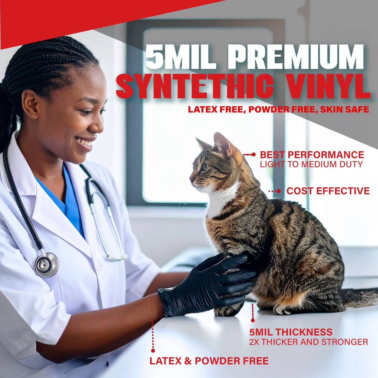 Black Synthetic Vinyl Exam Gloves - 1000, 200 & 100 Count