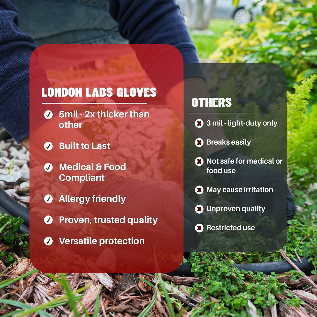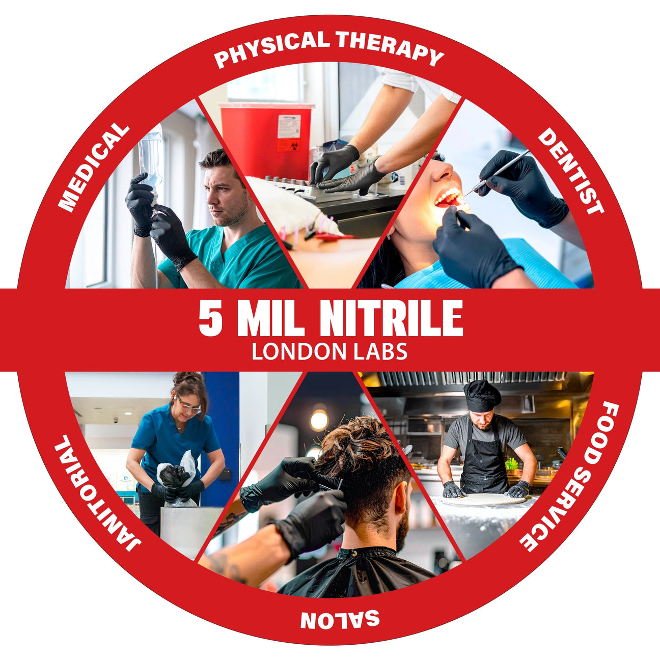 London Labs Disposable Black Synthetic Vinyl Gloves are the most cost-effective among all types of gloves which are widely used in any industry, such food handling, cleaning, beauty and salon, tattoo, etc.