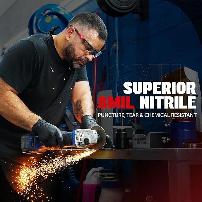 - π‘οΈ ULTIMATE PROTECTION: Unleash the power of 8 mil ultra-thick nitrile! When only the best will suffice, our gloves provide unparalleled protection against rips, punctures, and a wide range of chemicals. Safeguard your hands like a pro, with confidence.